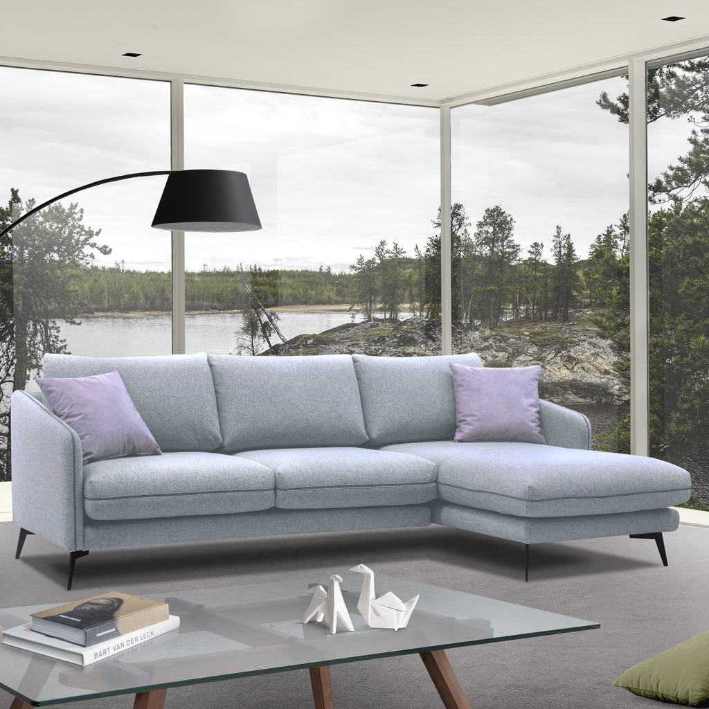 The Noel corner sofa is a comfortable rest in the Scandinavian style, a proposal for everyone who is looking for a sofa that is not only comfortable, but also extremely elegant. Three spacious backrest cushions made of high-quality foam ensure comfort of use at the highest level.